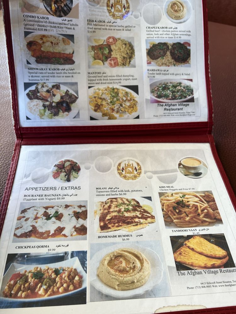 The Afghan Village is a Middle Eastern and Halal restaurant located in Houston, TX. Offering a variety of traditional Afghan dishes, such as Bolani turnovers, Qabuli Pilau, and Chicken Karhai, this family-owned establishment provides a cozy and welcoming atmosphere. Customers rave about the tender and flavorful goat, delicious kabobs, and standout dishes like mantoo and lemonade with mint. With options for vegan and vegetarian diners, as well as convenient amenities like delivery and catering services, The Afghan Village is a hidden gem that promises a satisfying dining experience. The attentive service, freshly made naan, and flavorful menu items make this restaurant a must-visit for those seeking authentic Afghan cuisine.